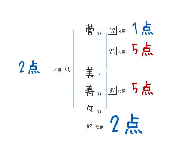 菅美寿々さんの画数の鑑定結果