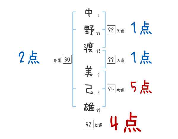 中野渡美己雄さんの画数の鑑定結果