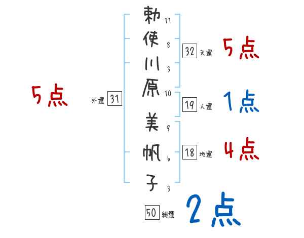 天運![]() | 勅使川原美帆子さんの天運は32画の5つ星!柔軟性があり成功する。チャンスが多く金運が良い。 家系が持つ宿命的な運勢を表します。祖先から受け継いだ苗字ですので自分の力が及びません。家柄を象徴します。 |