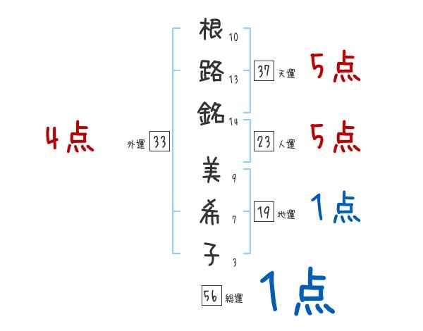 根路銘美希子さんの画数の鑑定結果