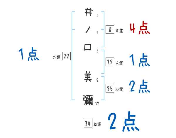 天運![]() | 井ノ口美彌さんの天運は8画の4つ星!勤勉家。根気強く努力し成功する。忍耐力がある。 家系が持つ宿命的な運勢を表します。祖先から受け継いだ苗字ですので自分の力が及びません。家柄を象徴します。 |