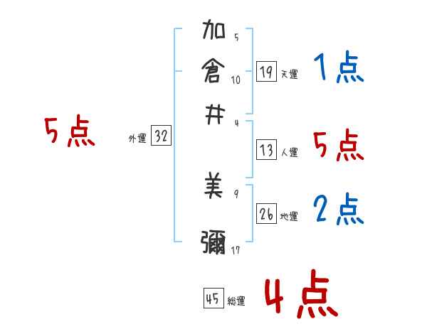 加倉井美彌さんの外運は32画の5つ星