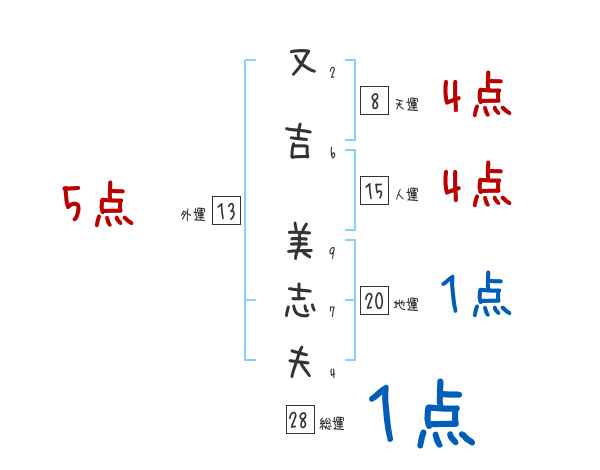 天運![]() | 又吉美志夫さんの天運は8画の4つ星!勤勉家。根気強く努力し成功する。忍耐力がある。 家系が持つ宿命的な運勢を表します。祖先から受け継いだ苗字ですので自分の力が及びません。家柄を象徴します。 |