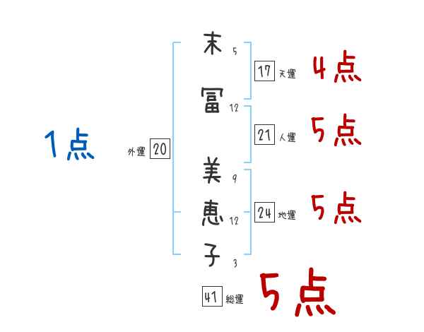 末冨美恵子さんの画数の鑑定結果