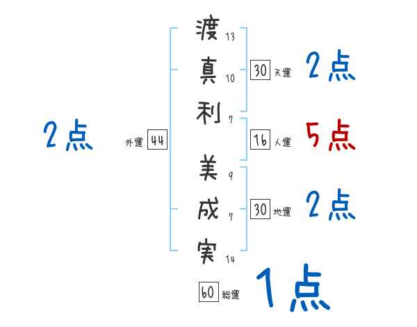 渡真利美成実さんの画数の鑑定結果