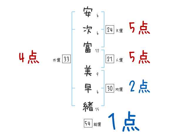 安次富美早緒さんの画数の鑑定結果