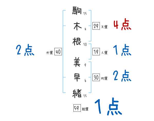 駒木根美早緒さんの画数の鑑定結果