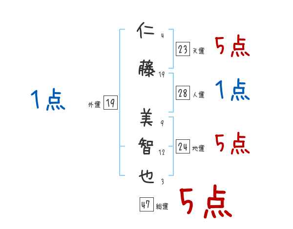 総運![]() | 仁藤美智也さんの総運は47画の5つ星!実力が開花し発展する円満な人生。財に恵まれる。 あなたの人生を表す1番重要な運勢です。生涯を通じて影響する総合運となり、主に50歳以降の晩年期に影響を及ぼします。 |