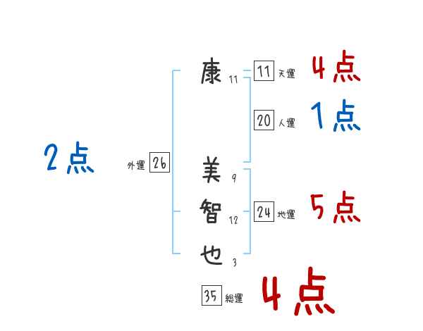 康美智也さんの画数の鑑定結果