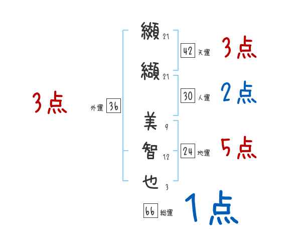 纐纈美智也さんの画数の鑑定結果