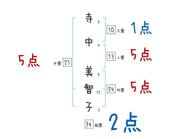 寺中美智子さんの画数の鑑定結果