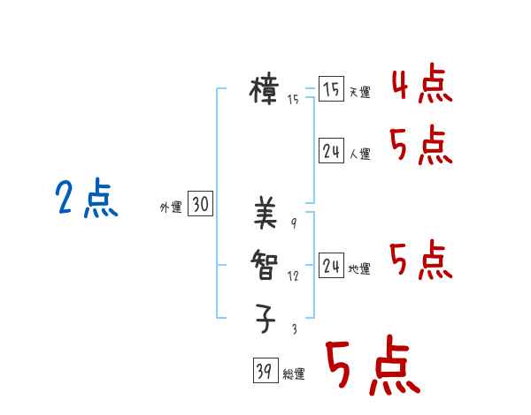 総運![]() | 樟美智子さんの総運は39画の5つ星!社交性に優れ人望が厚い。人の上に立ち成功する。 あなたの人生を表す1番重要な運勢です。生涯を通じて影響する総合運となり、主に50歳以降の晩年期に影響を及ぼします。 |