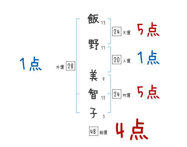 飯野美智子さんの画数の鑑定結果