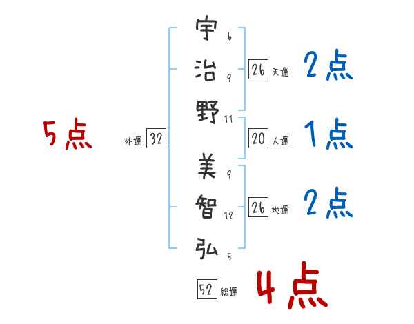 宇治野美智弘さんの画数の鑑定結果