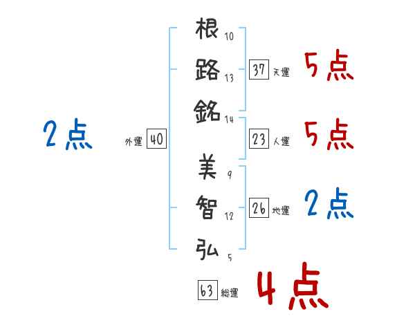 根路銘美智弘さんの画数の鑑定結果