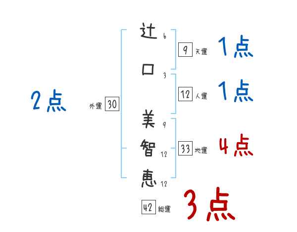 外運![]() | 辻口美智恵さんの外運は30画の2つ星!浮き沈みの激しさに注意しましょう。 生活面を象徴する運勢です。外部から受ける影響力を表し、結婚運、家庭運や職場、環境への順応性を表します。 |