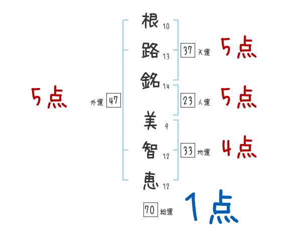 根路銘美智恵さんの画数の鑑定結果