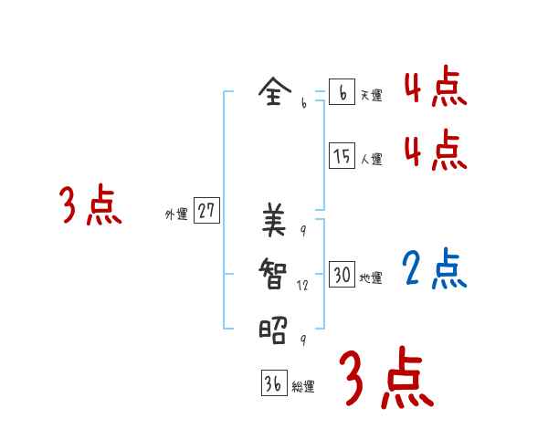 全美智昭さんの画数の鑑定結果