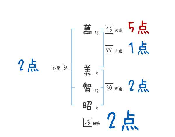 萬美智昭さんの画数の鑑定結果