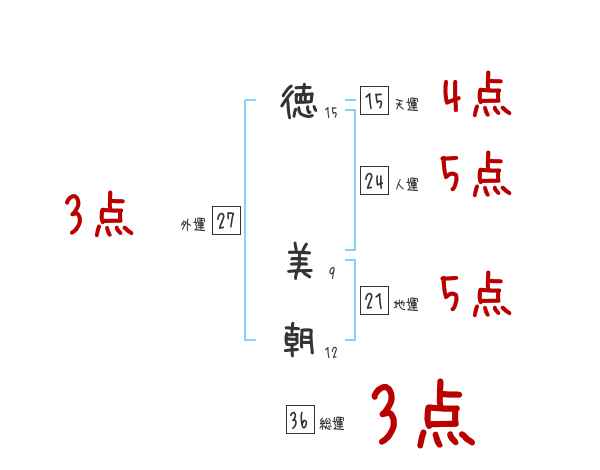 徳美朝さんの画数の鑑定結果