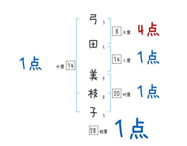 弓田美枝子さんの画数の鑑定結果
