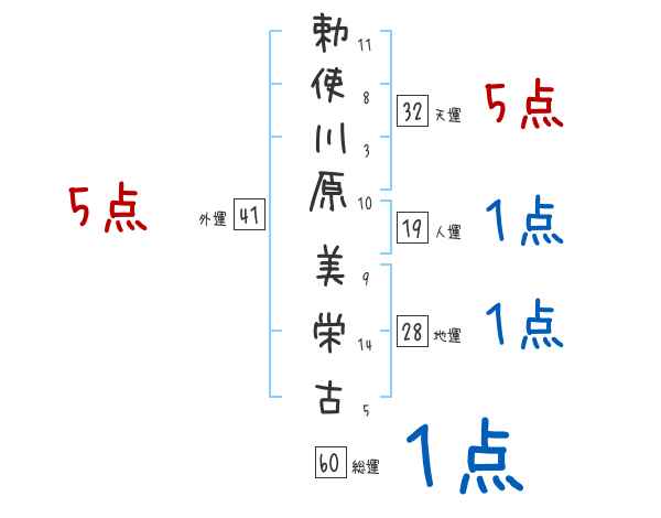 天運![]() | 勅使川原美栄古さんの天運は32画の5つ星!柔軟性があり成功する。チャンスが多く金運が良い。 家系が持つ宿命的な運勢を表します。祖先から受け継いだ苗字ですので自分の力が及びません。家柄を象徴します。 |