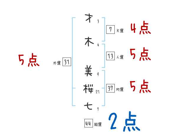 外運![]() | 才木美桜七さんの外運は31画の5つ星!社交性があり判断力に優れる。順風満帆な人生で円満な生活。 生活面を象徴する運勢です。外部から受ける影響力を表し、結婚運、家庭運や職場、環境への順応性を表します。 |