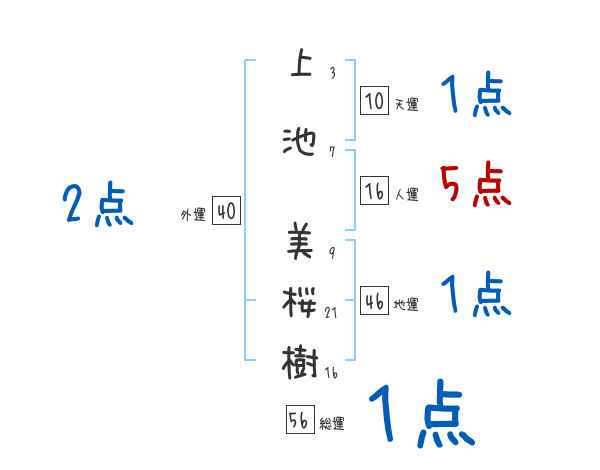 上池美桜樹さんの画数の鑑定結果
