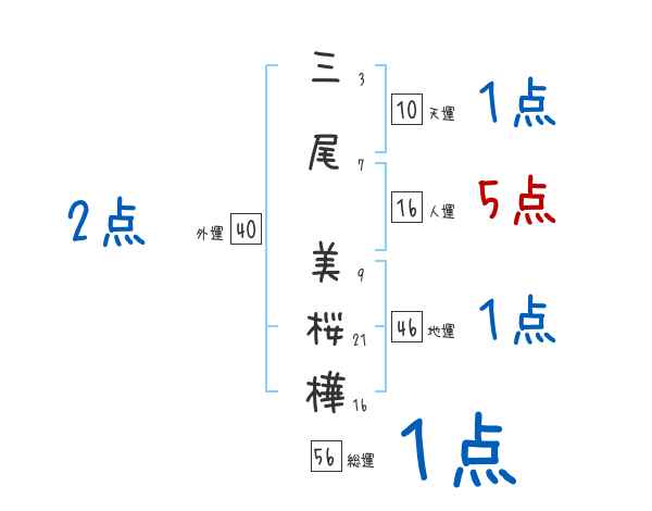 三尾美桜樺さんの画数の鑑定結果