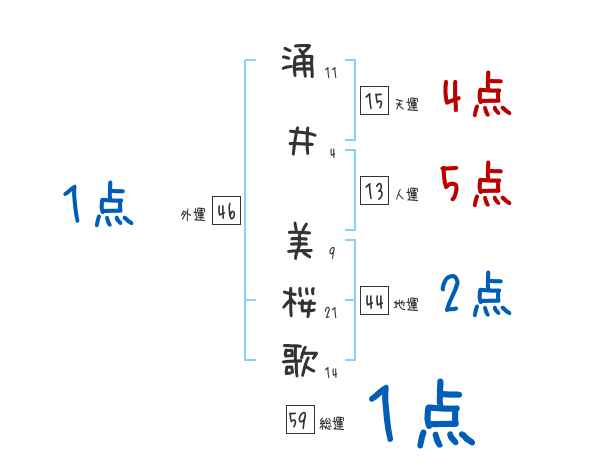 涌井美桜歌さんの画数の鑑定結果
