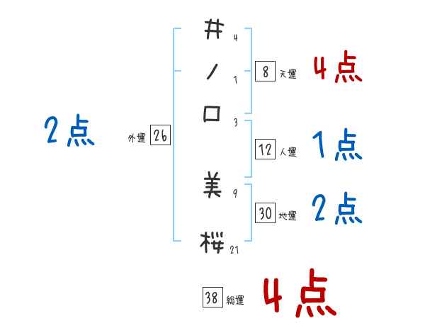 外運![]() | 井ノ口美桜さんの外運は26画の2つ星!波瀾万丈かも。信頼できる人を大事にしましょう。 生活面を象徴する運勢です。外部から受ける影響力を表し、結婚運、家庭運や職場、環境への順応性を表します。 |