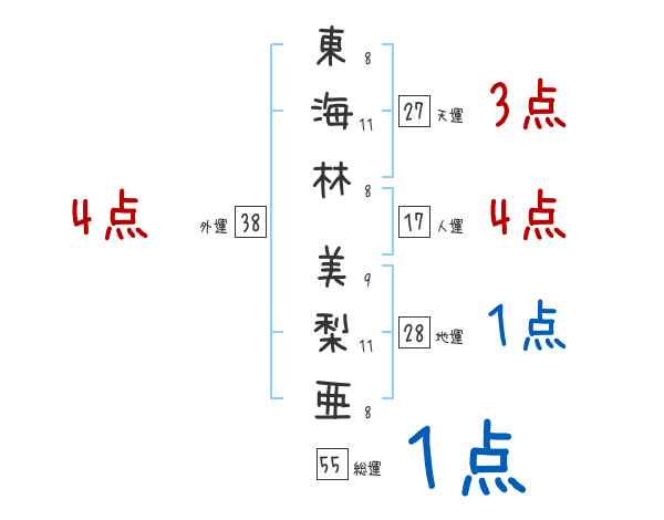 外運![]() | 東海林美梨亜さんの外運は38画の4つ星!温厚な性格で技術的な才能を発揮する。職人的な仕事に向いている。 生活面を象徴する運勢です。外部から受ける影響力を表し、結婚運、家庭運や職場、環境への順応性を表します。 |