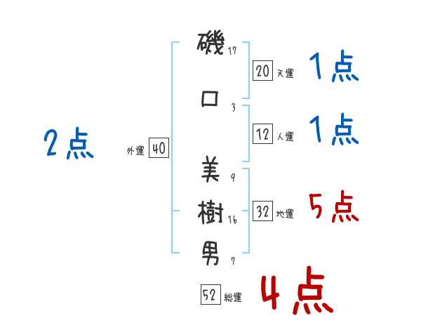 磯口美樹男さんの画数の鑑定結果