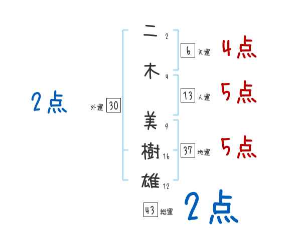 二木美樹雄さんの画数の鑑定結果