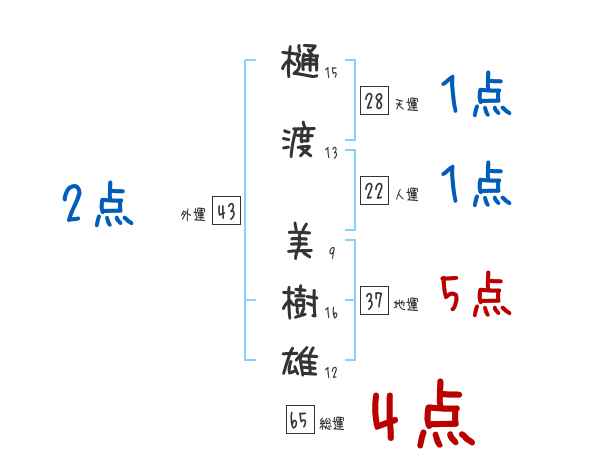 樋渡美樹雄さんの画数の鑑定結果