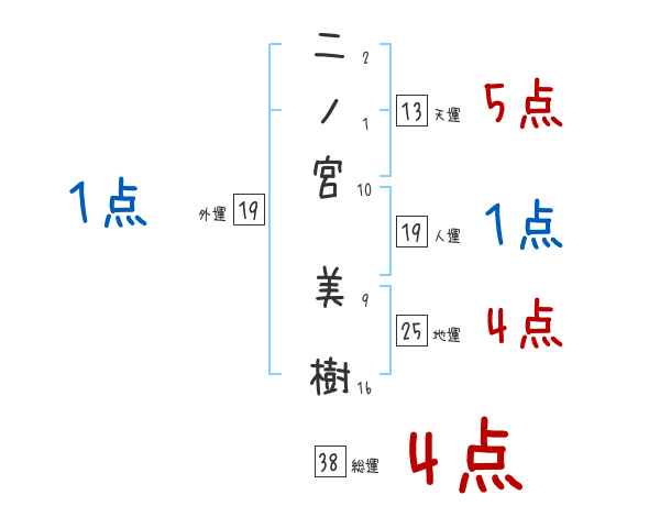 二ノ宮美樹さんの画数の鑑定結果