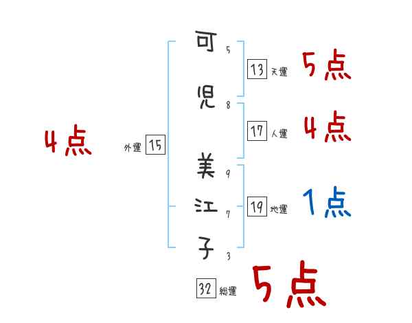 総運![]() | 可児美江子さんの総運は32画の5つ星!柔軟性があり成功する。チャンスが多く金運が良い。 あなたの人生を表す1番重要な運勢です。生涯を通じて影響する総合運となり、主に50歳以降の晩年期に影響を及ぼします。 |