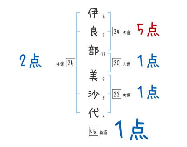 伊良部美沙代さんの画数の鑑定結果