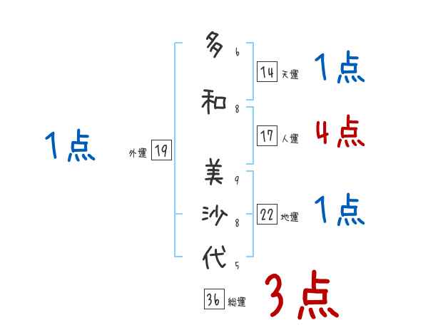 総運![]() | 多和美沙代さんの総運は36画の3つ星!先見性が豊かです。多少神経質で苦労することも。 あなたの人生を表す1番重要な運勢です。生涯を通じて影響する総合運となり、主に50歳以降の晩年期に影響を及ぼします。 |