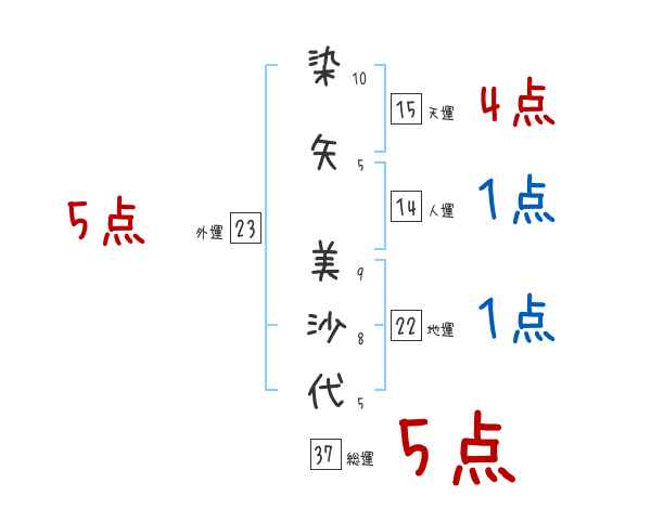 外運![]() | 染矢美沙代さんの外運は23画の5つ星!想像力に優れ活力がある。一代で成功し名誉を手に入れる。 生活面を象徴する運勢です。外部から受ける影響力を表し、結婚運、家庭運や職場、環境への順応性を表します。 |