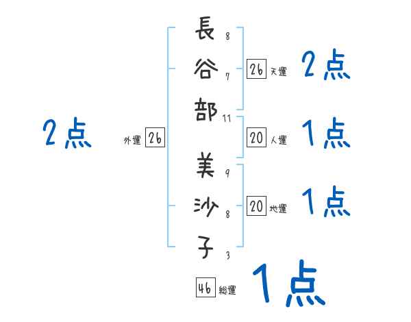 長谷部美沙子さんの画数の鑑定結果