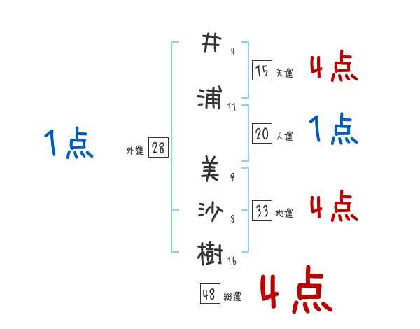 外運![]() | 井浦美沙樹さんの外運は28画の1つ星!家庭環境に注意。スポーツで活躍できる能力があるかも。 生活面を象徴する運勢です。外部から受ける影響力を表し、結婚運、家庭運や職場、環境への順応性を表します。 |