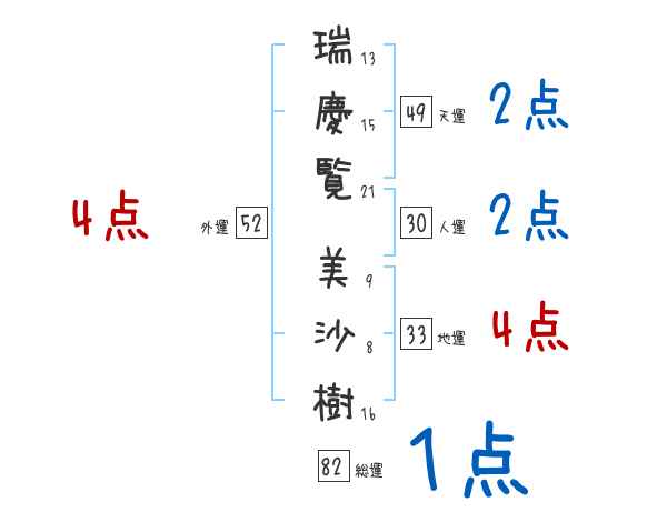 瑞慶覧美沙樹さんの画数の鑑定結果