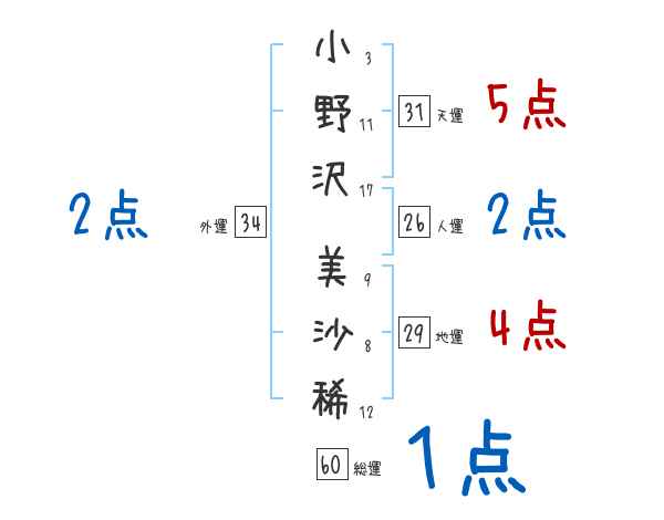 小野沢美沙稀さんの画数の鑑定結果