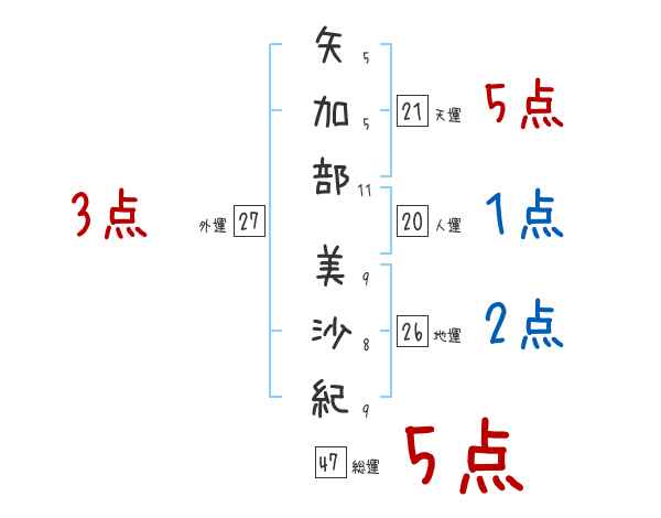 矢加部美沙紀さんの画数の鑑定結果
