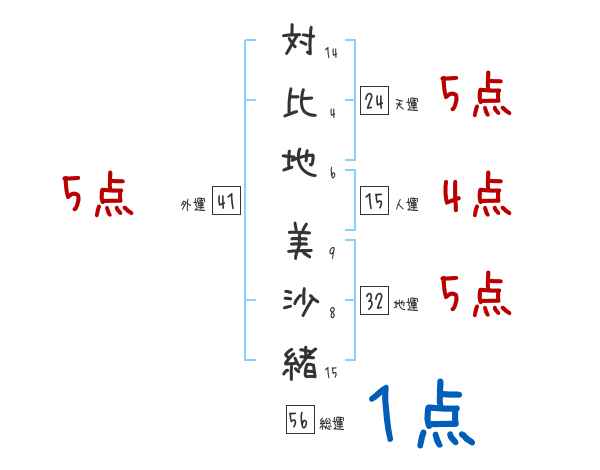 対比地美沙緒さんの画数の鑑定結果