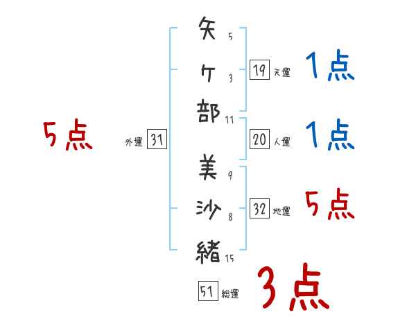 矢ヶ部美沙緒さんの画数の鑑定結果