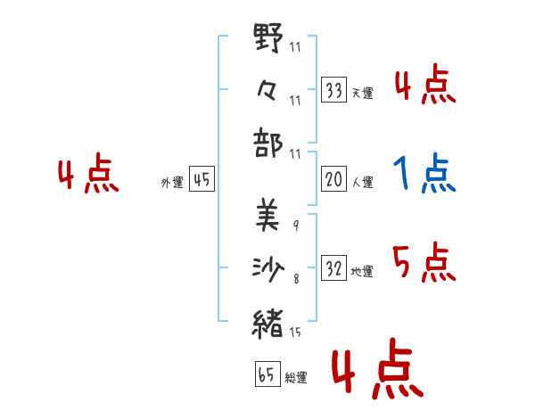 野々部美沙緒さんの画数の鑑定結果