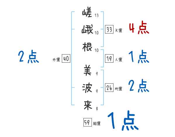 嵯峨根美波来さんの画数の鑑定結果