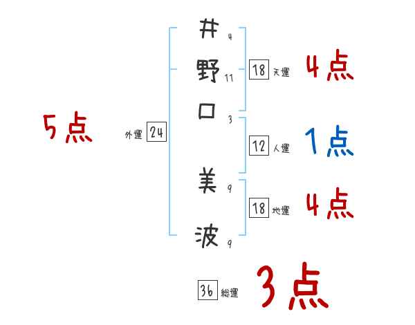 井野口美波さんの画数の鑑定結果